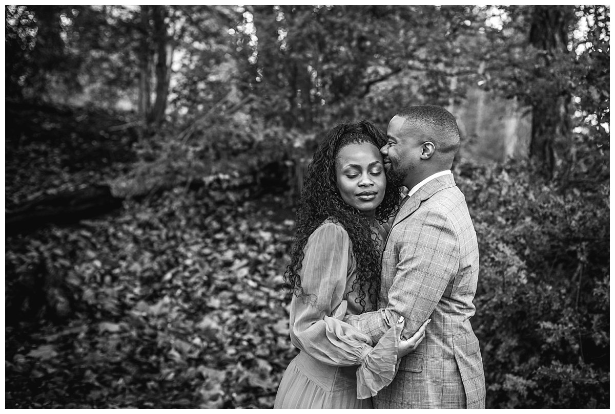 Bride and groom to be stand together at Heaton Park engagement shoot at Manchester photographers. Beautiful natural photography