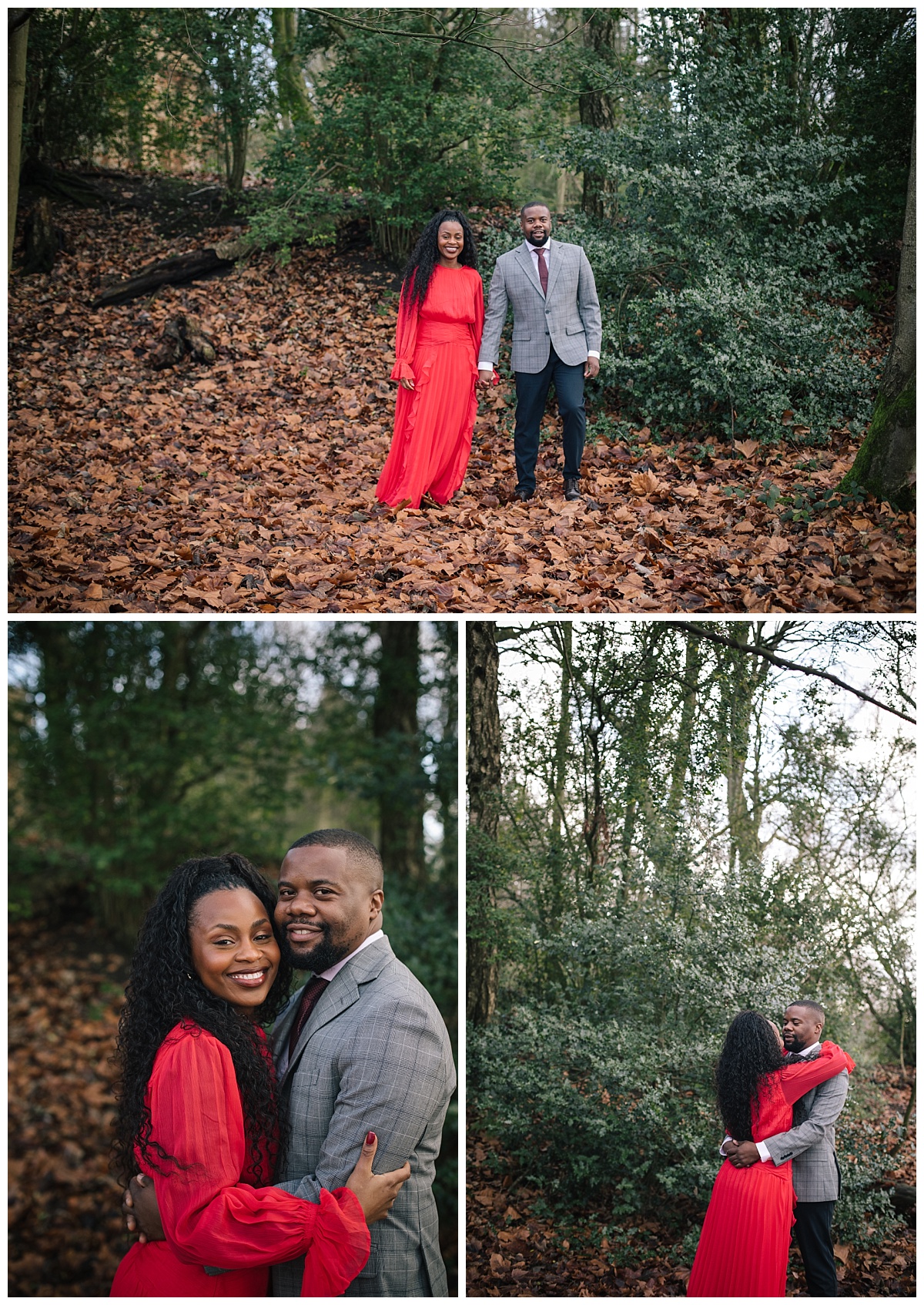 Beautiful couple in autumn leaves during engagement shoot at Heaton Park photography session
