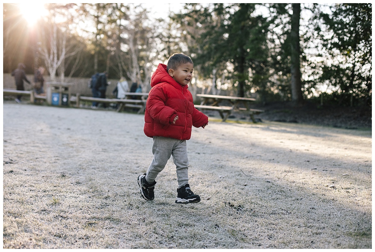 Boy runs at Center Parcs in frost at Whinfell Forest photographer